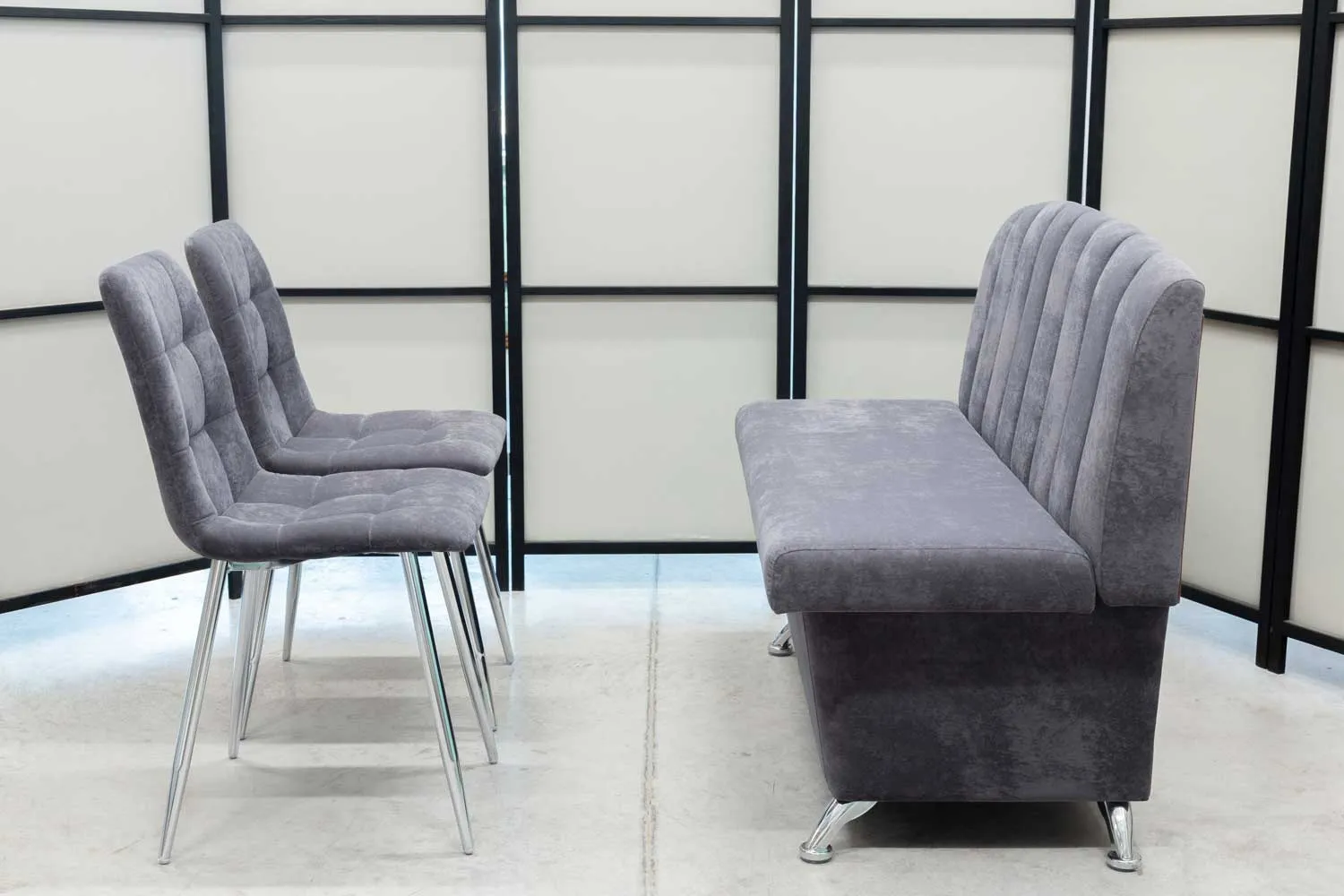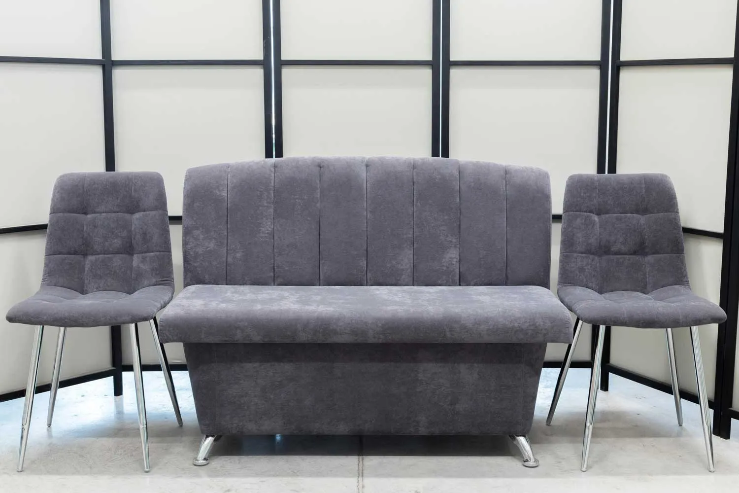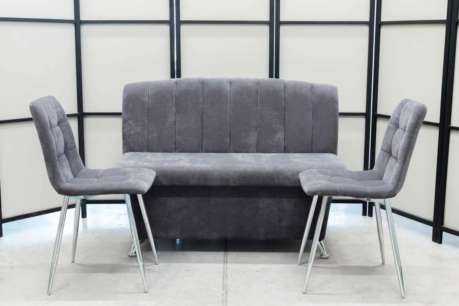 Обеденная группа Альт (диван, 2 стула хром, графит)