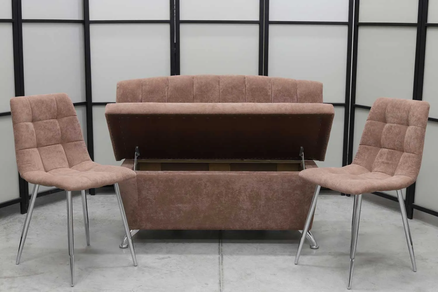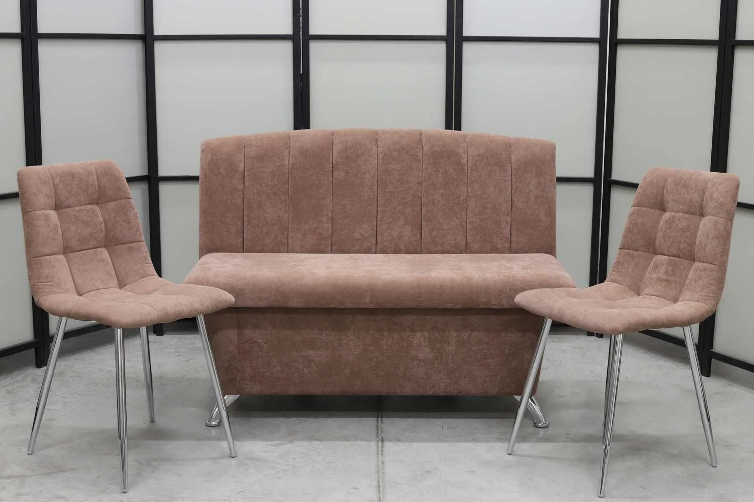 Обеденная группа Альт (диван, 2 стула хром, мокка)