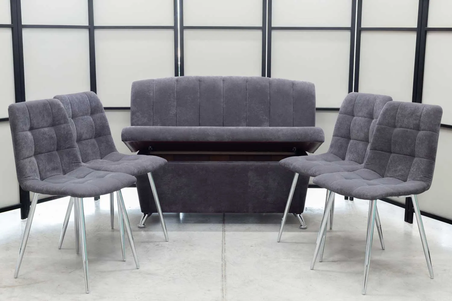 Обеденная группа Альт (диван, 4 стула хром, графит)