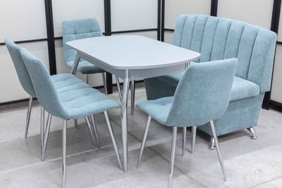 Обеденная группа Альт ментол (диван, стол, 4 стула хром)
