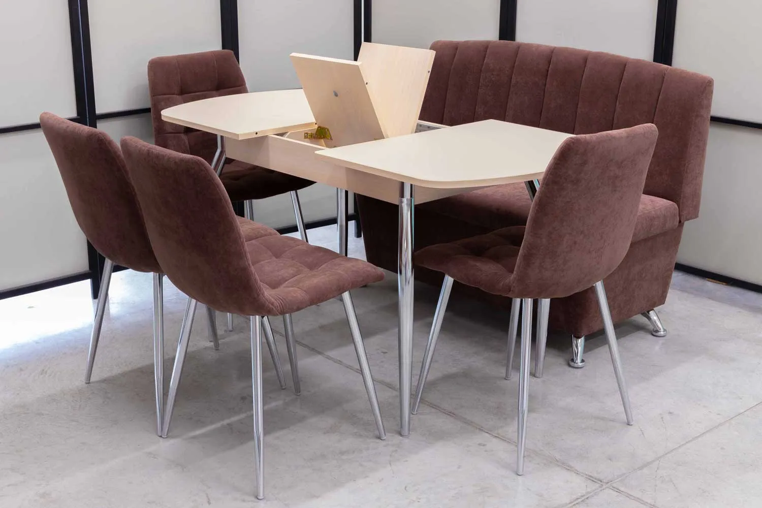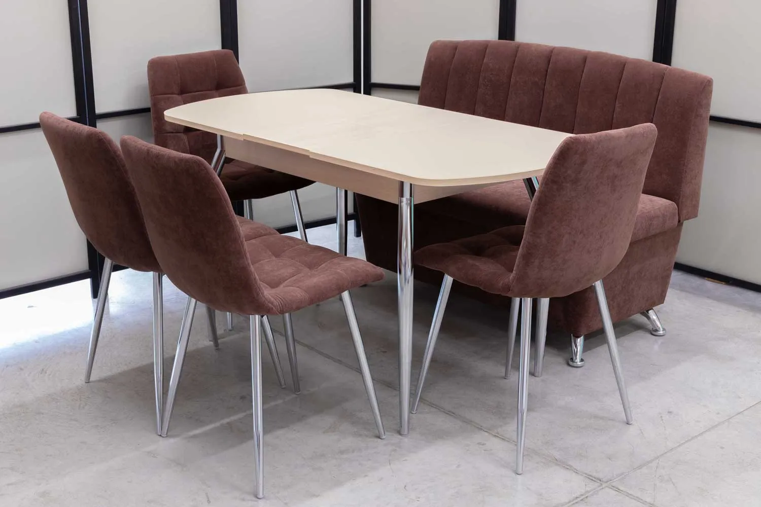 Обеденная группа Альт ментол (диван, стол, 4 стула хром)