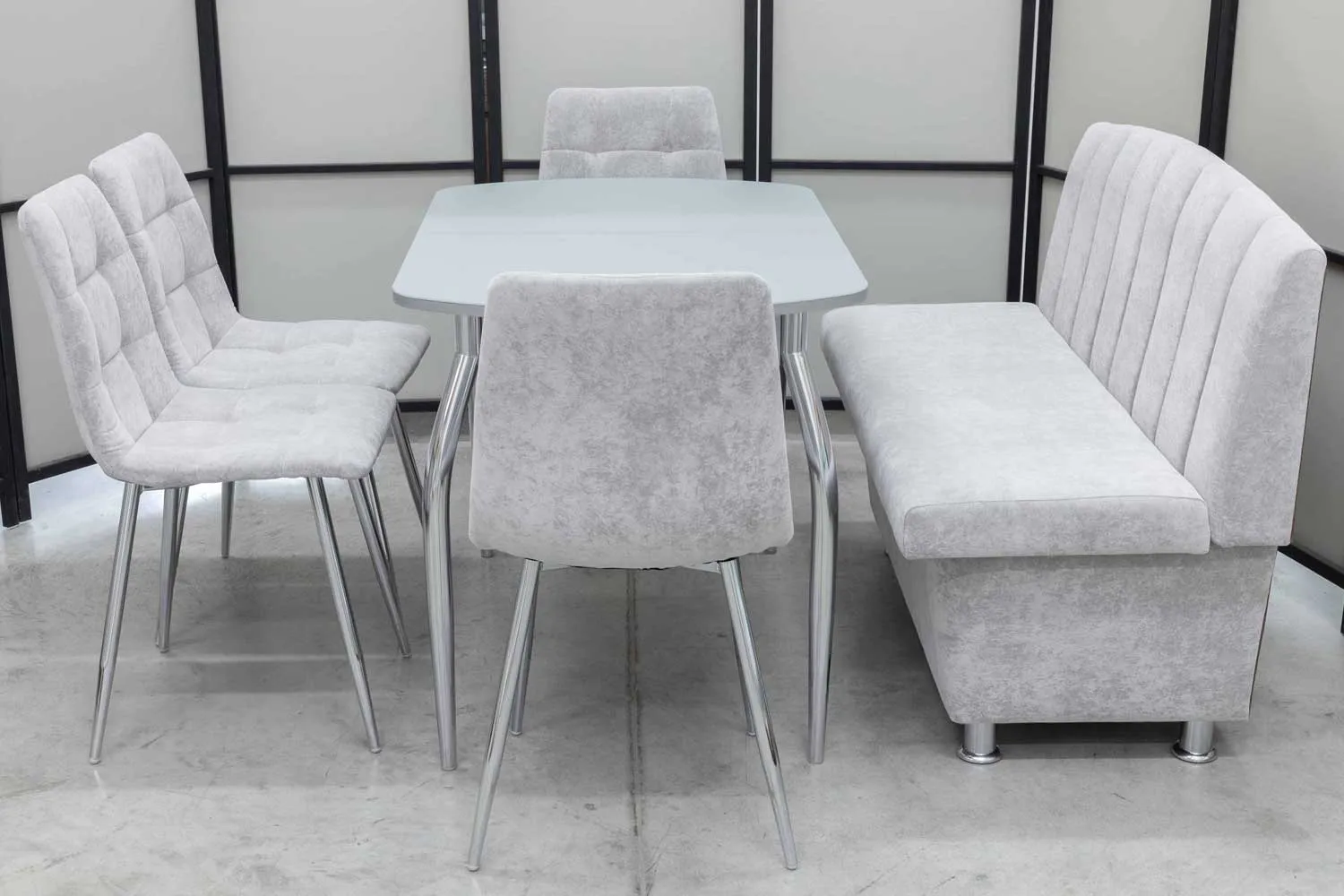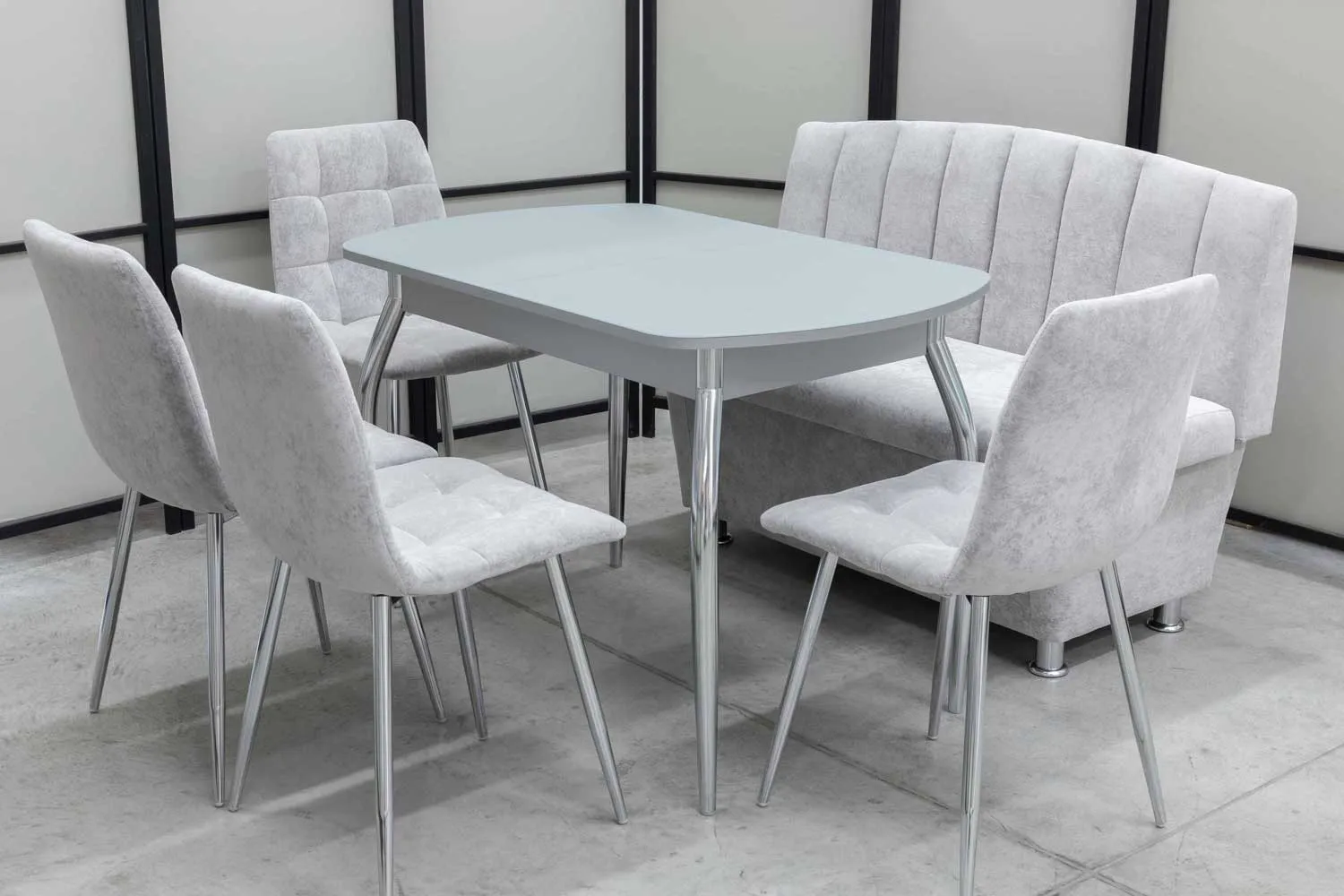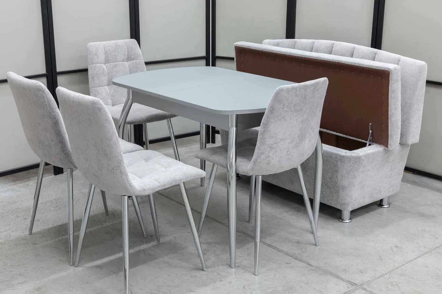 Обеденная группа Альт (диван, стол, 4 стула хром)