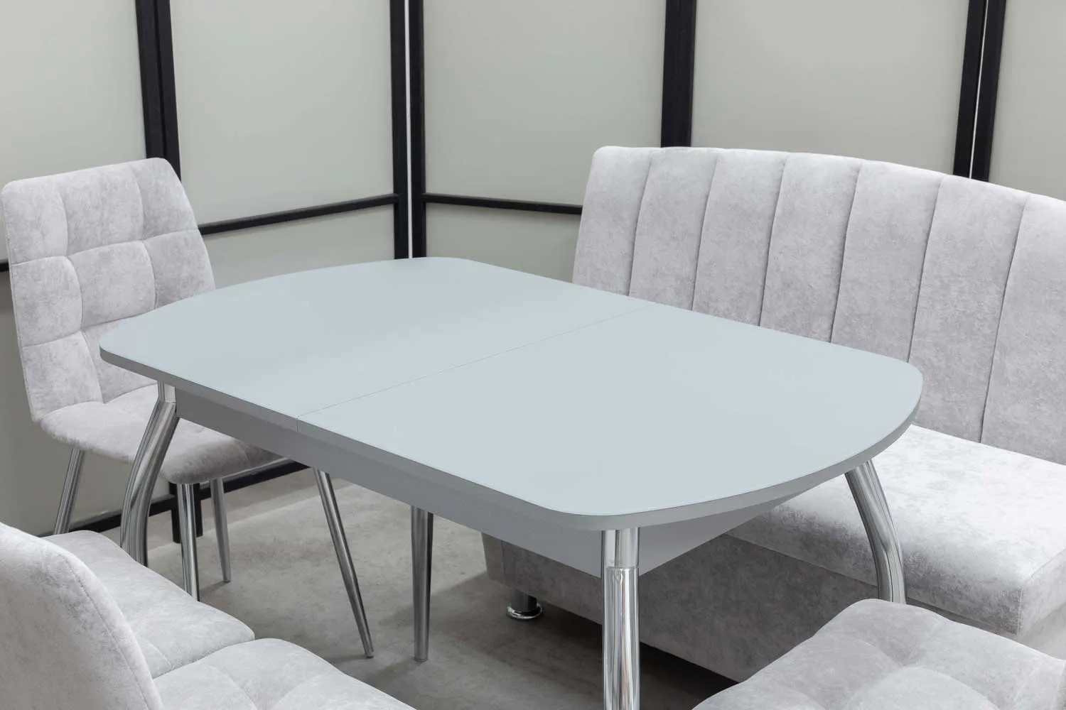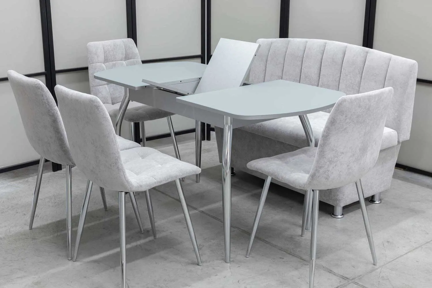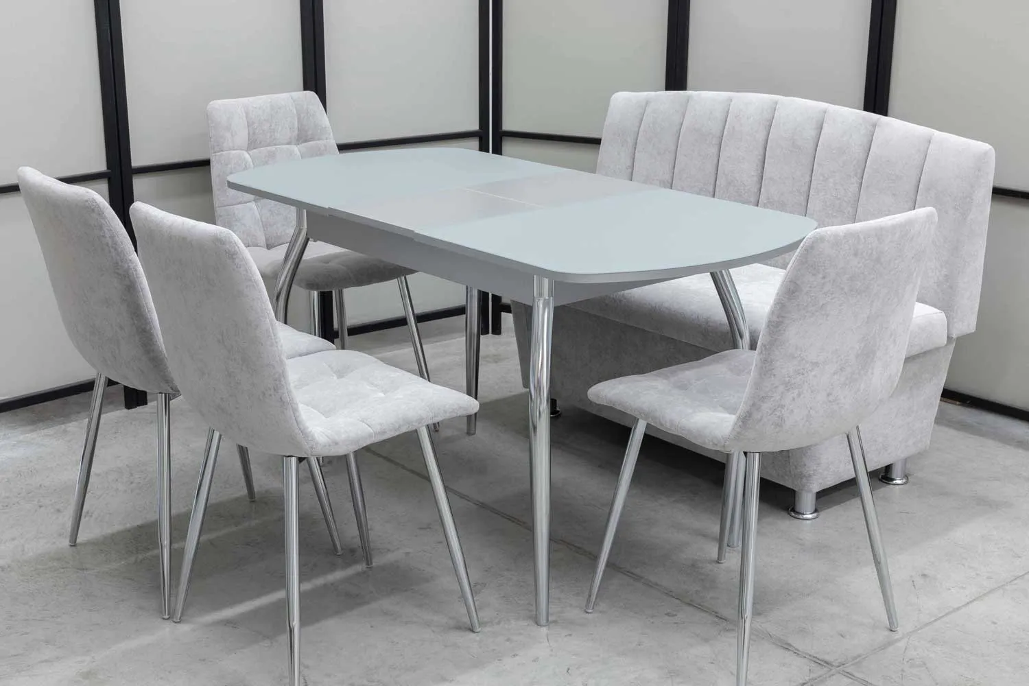 Обеденная группа Альт (диван, стол, 4 стула хром)