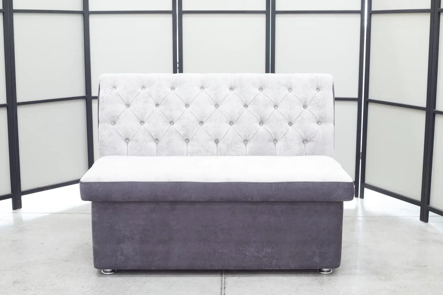 Кухонный прямой диван Монро с каретной стяжкой и ящиком