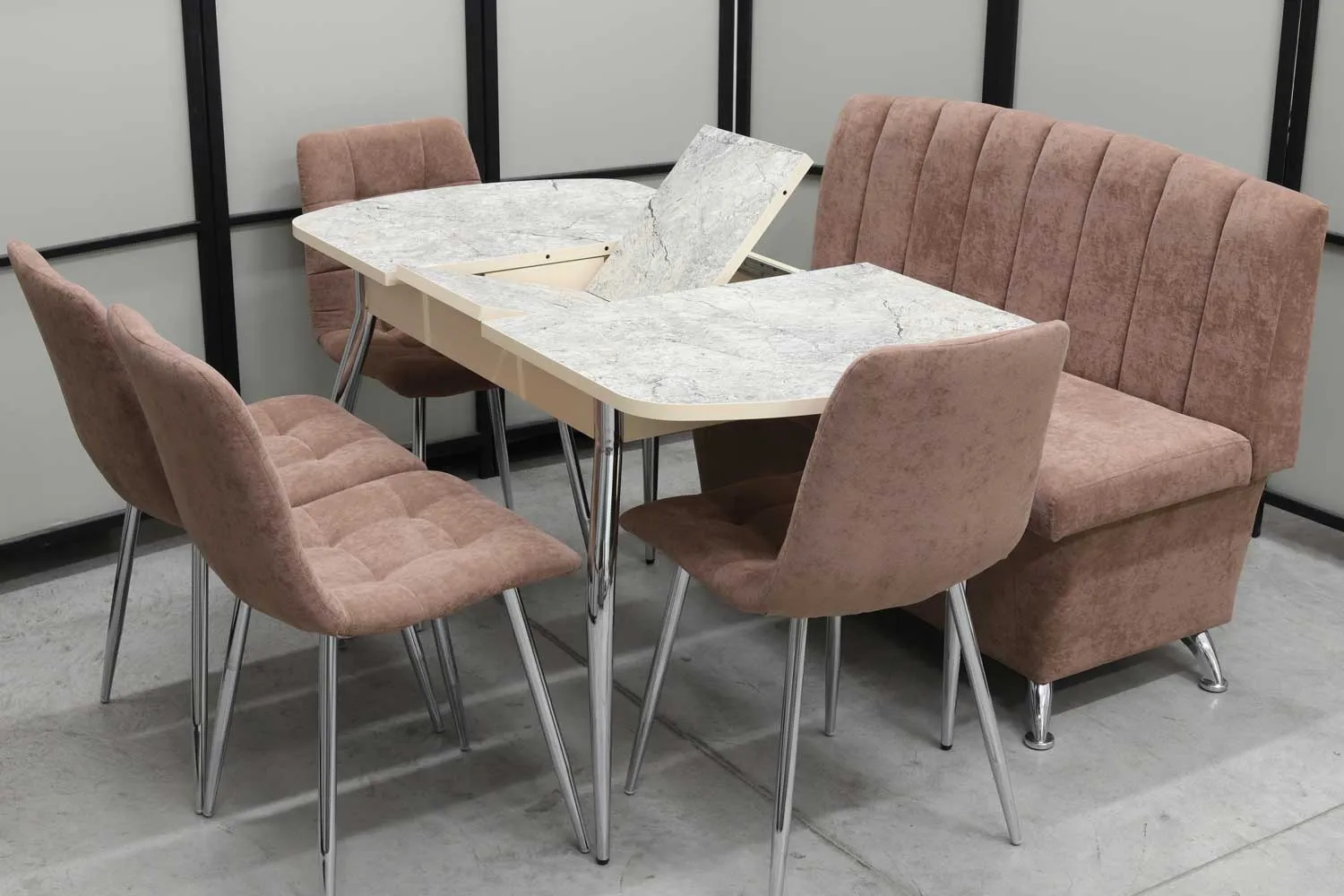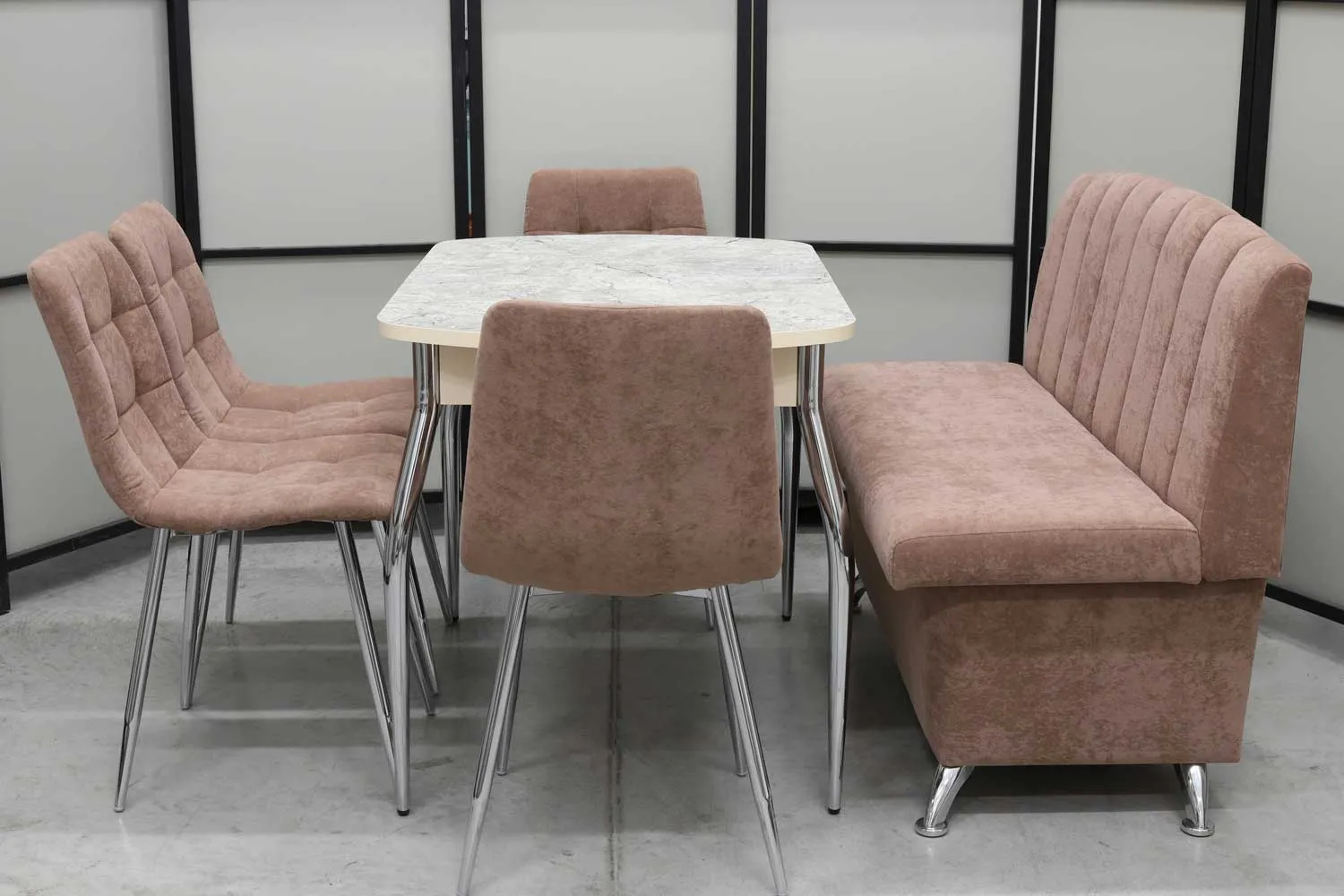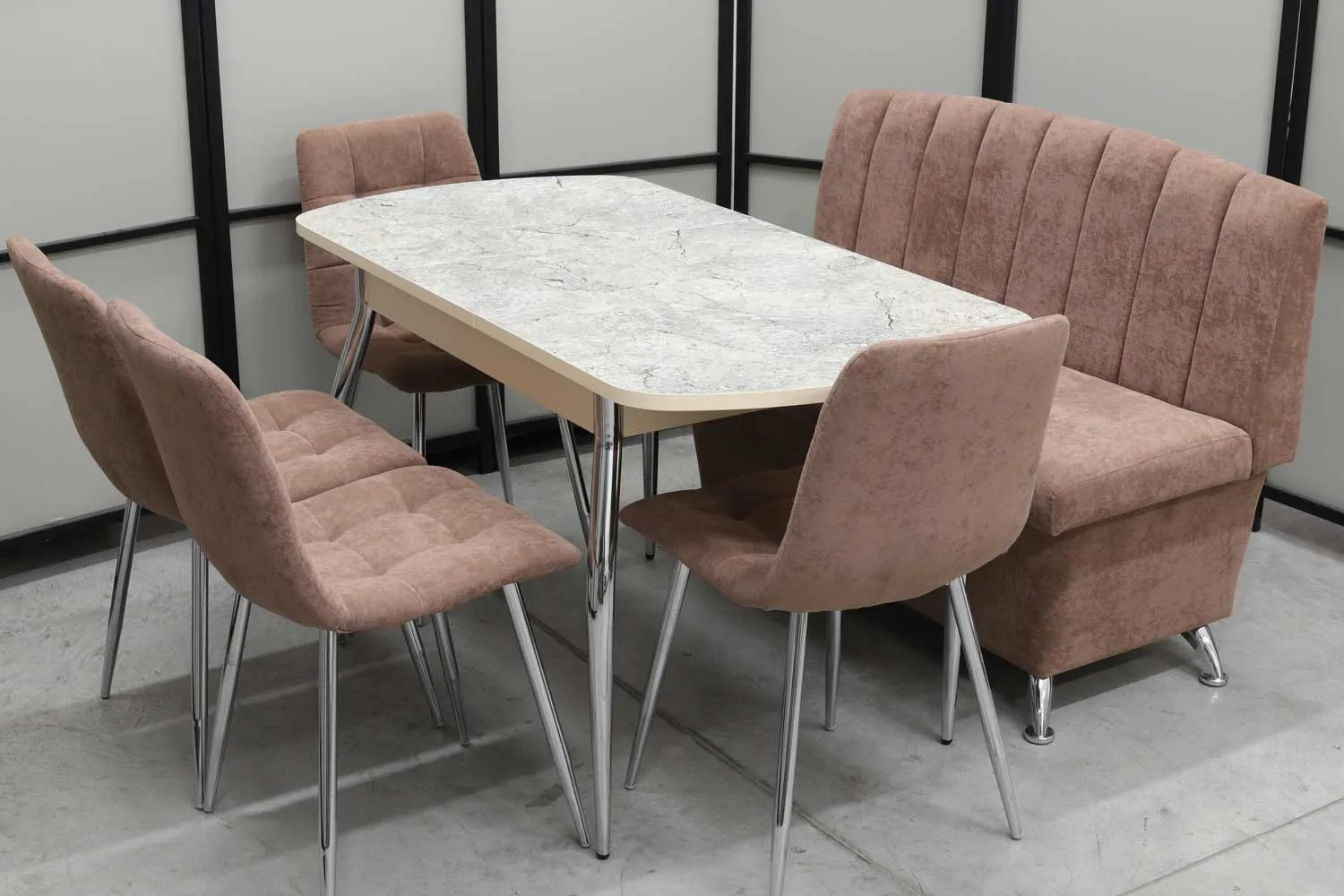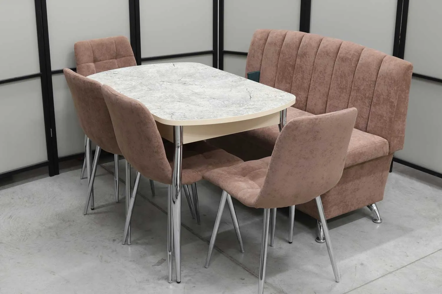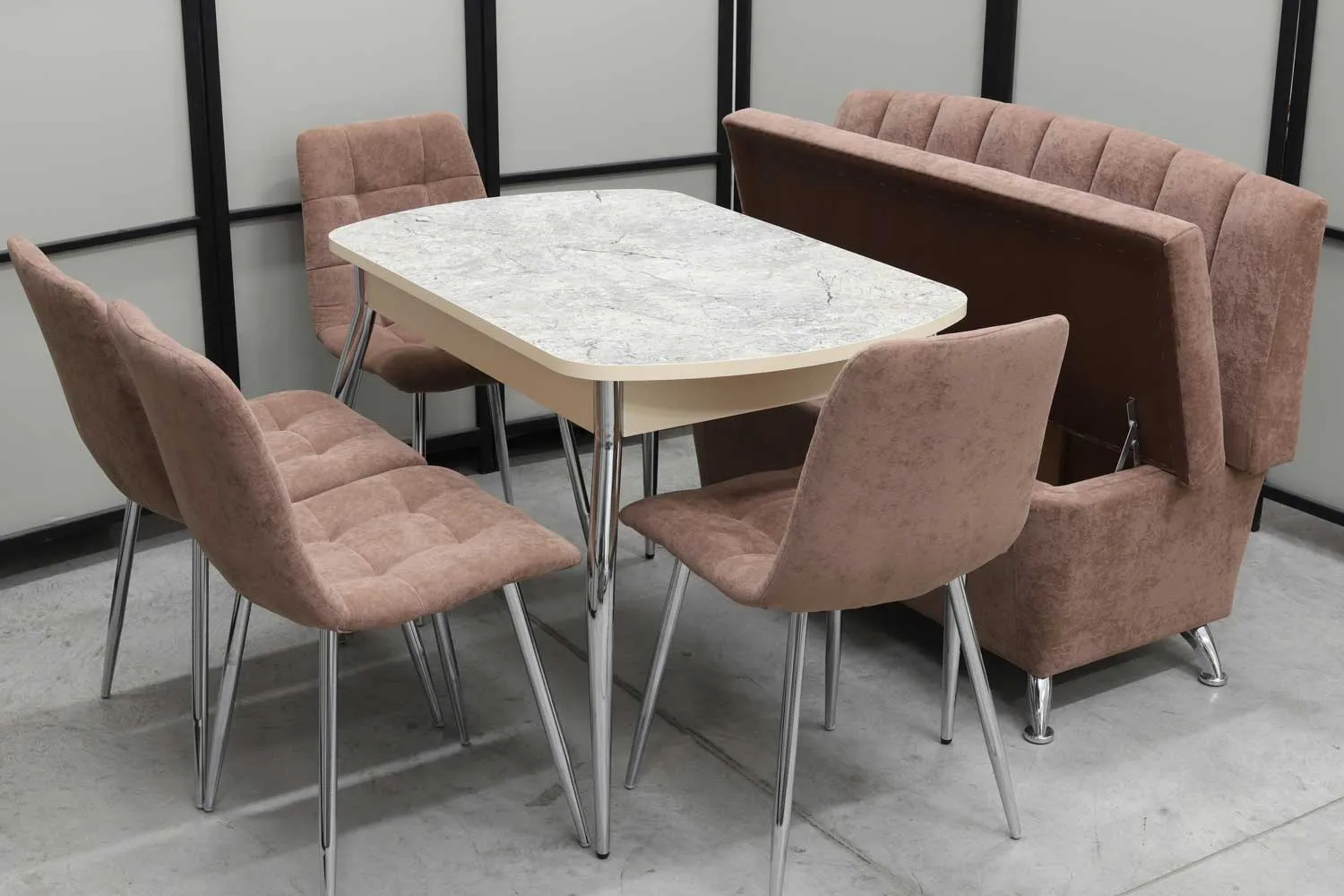 Обеденная группа Альт (диван Альт, стол Милт и 4 стула хром)